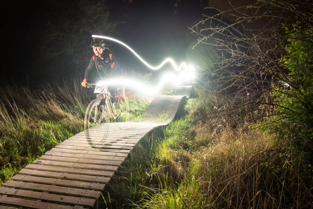 I felt like I was riding well, I was in a good headspace & at some point during the dark hours I started to close the gap on Michelle. There was a long way to go and anything could still happen. Encouraged, I pushed harder. Then something did happen – and not something I either wanted or had foreseen. A sharp, hot, pain shot through my right knee. Ouch! Then another. And another. Then it extended from my knee into my Achilles. This was not part of the plan!! Slightly panicked, I worked out a plan B. Can’t put power through the pedals? Spin an easy gear. Walk up Hamburger Hill. Just keep moving. Can’t land a jump without another stap of pain? Roll them. The gap to first widened and the gap to Fiona Mathews in third narrowed. My spirits faltered. “Control the controllables,” I reminded myself, “Do what you can do, and you CAN do your best.”